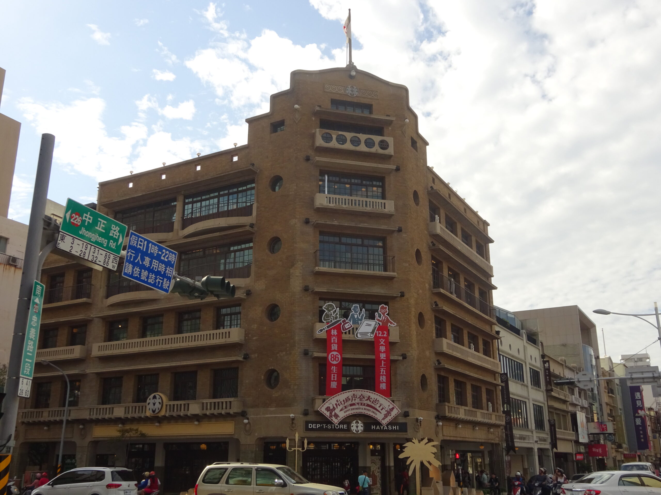 世界大戦中に台南市が空襲に遭い、半壊状態になったらしいのですが、2014年に復元され、現在のハヤシ百貨店がリニューアルオープンされました。